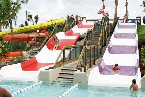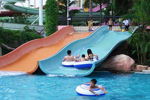 公司設計生產的兒童水上滑梯是豐富多彩,各式各樣的,有彎曲的、螺旋的、直線的、親子的、身體直滑的、皮筏乘滑的、波浪形的、卡通形狀的、敞開的、封閉的等等應有盡有。